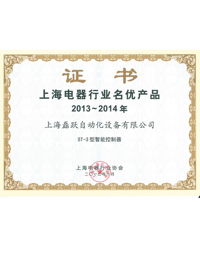 上海磊躍獲得2013-2014年度上海電器行業名優